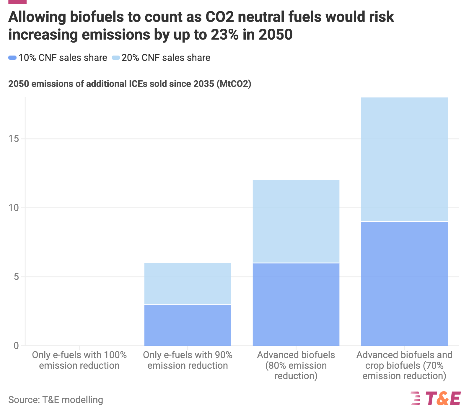Allowing biofuels to count as CO2 neutral fuels would risk increasing 2050 emissions by up to 23%. Europe faces a decisive choice: to either lead the global BEV race or fall behind by diverting to false solutions.