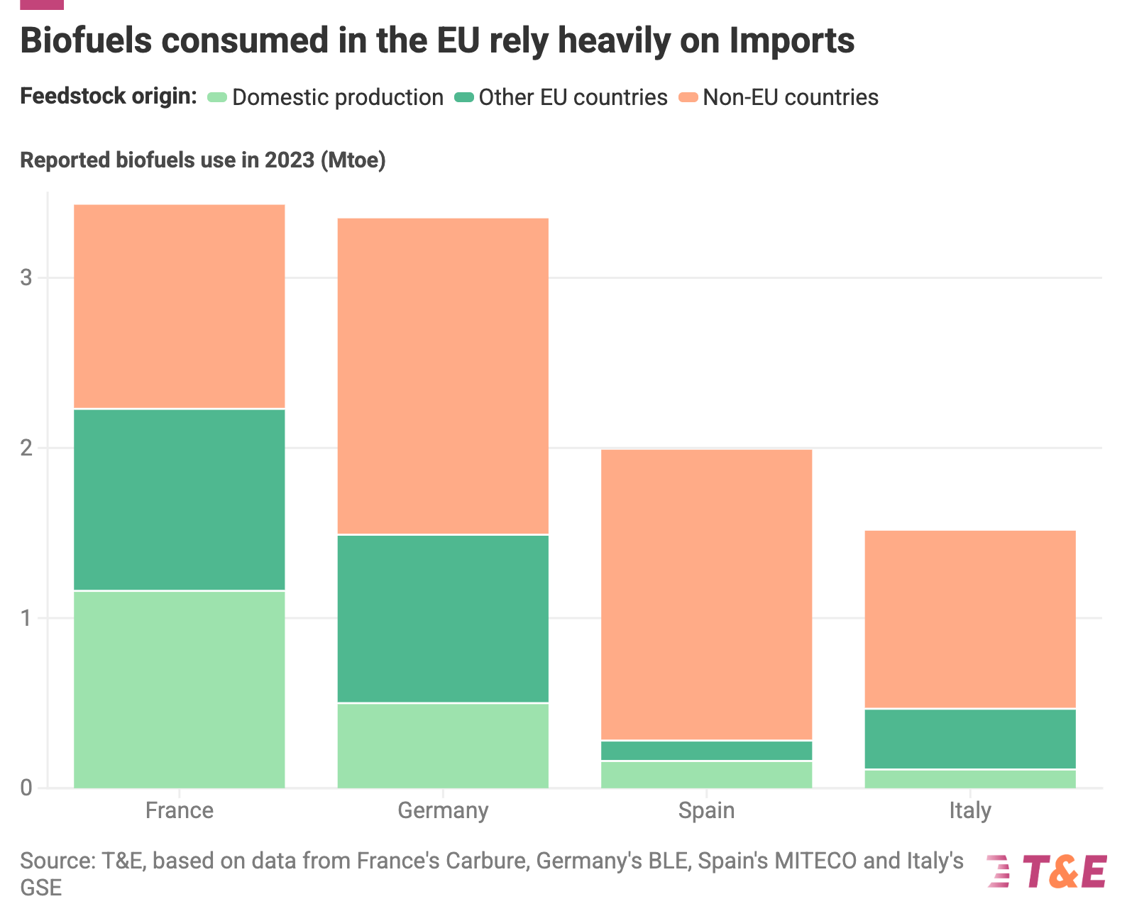 60% Percentage of biofuels imported from non-EU countries (used in IT, ES, DE, FR)