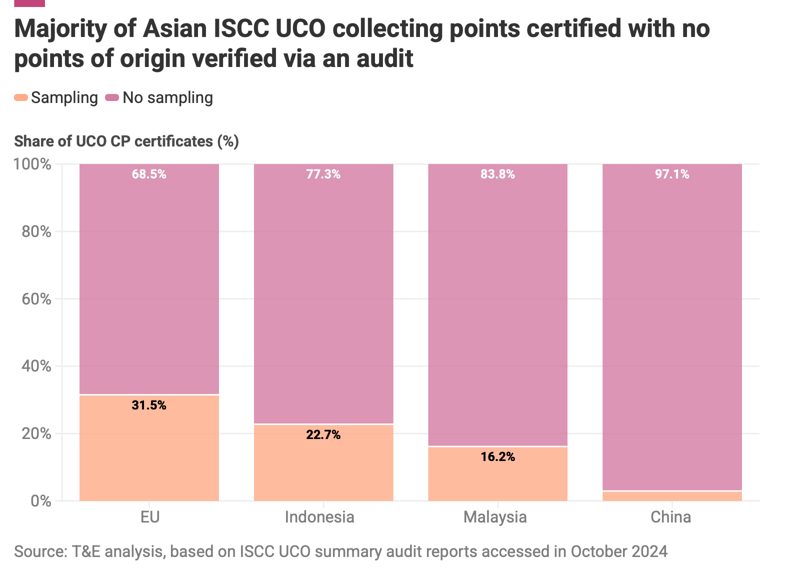 9% Percentage of International Sustainability and Carbon Certification (ISCC)-certified UCO collectors in China, Malaysia, and Indonesia verified through an on-site audit
