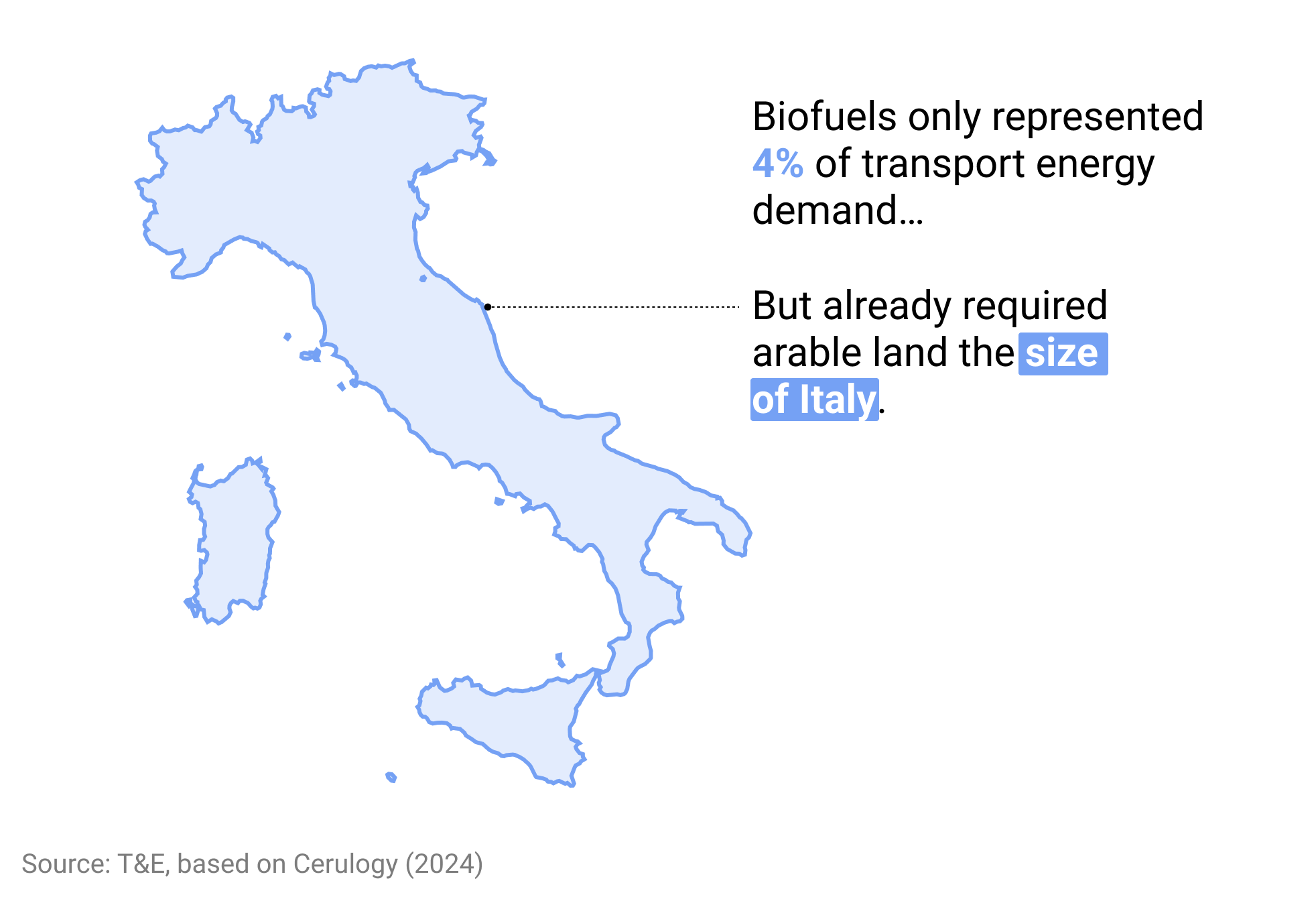 Today, growing crops to be burned as fuel uses up 32 million hectares of land - roughly the size of Italy.