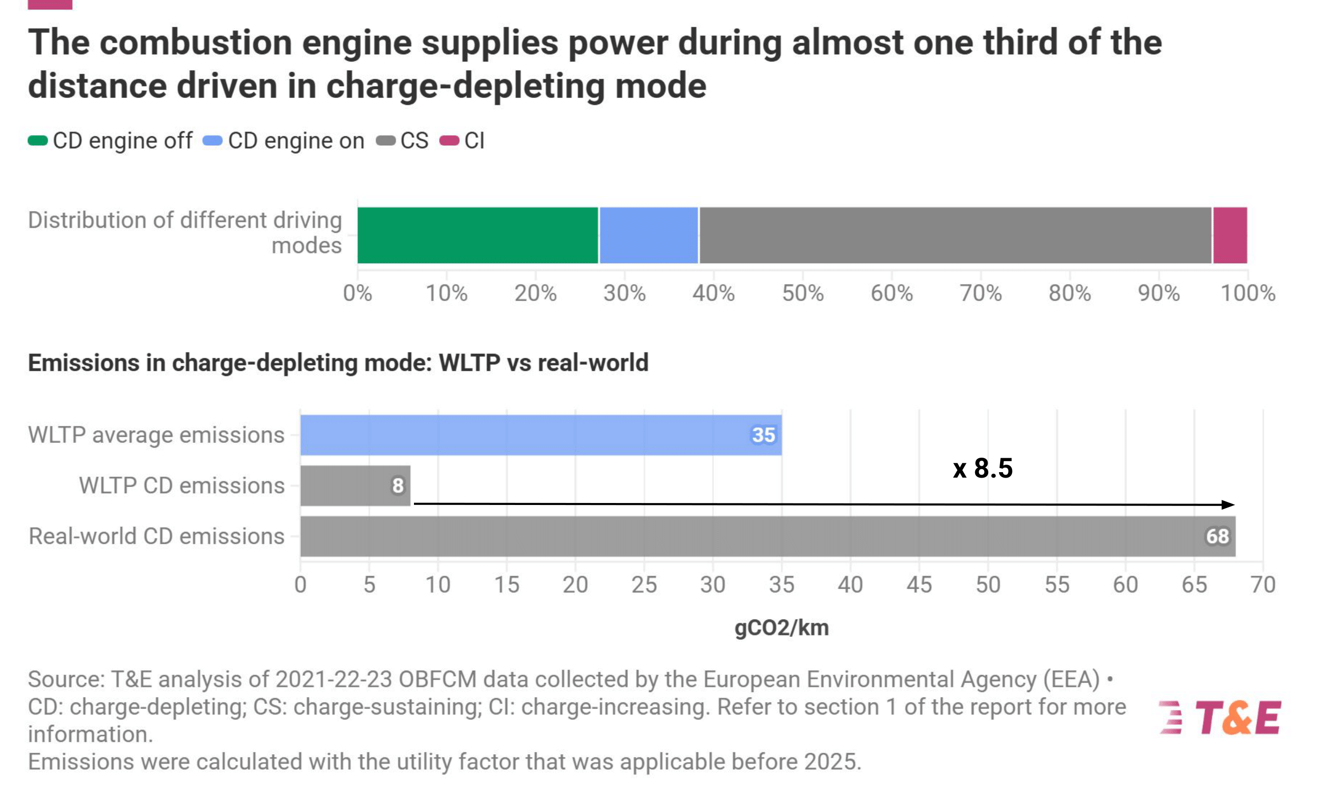 As a result, PHEVs emitted roughly the same as conventional hybrids and combustion vehicles in the real world. Despite official emissions being 75% lower.