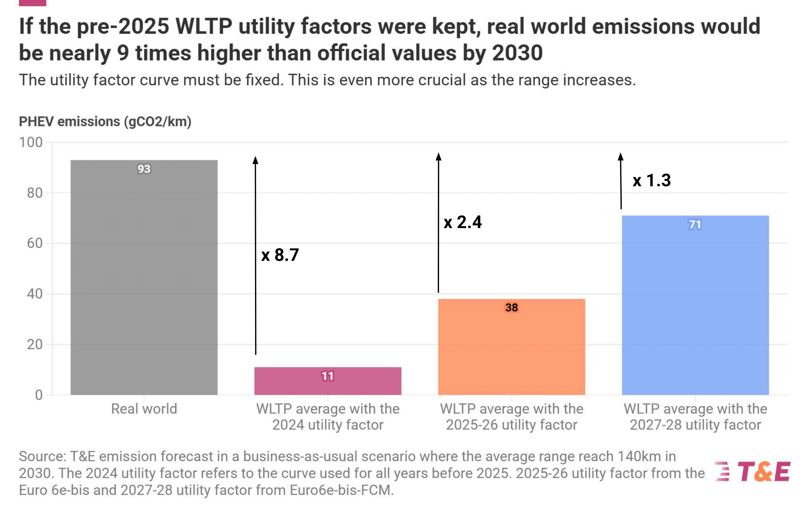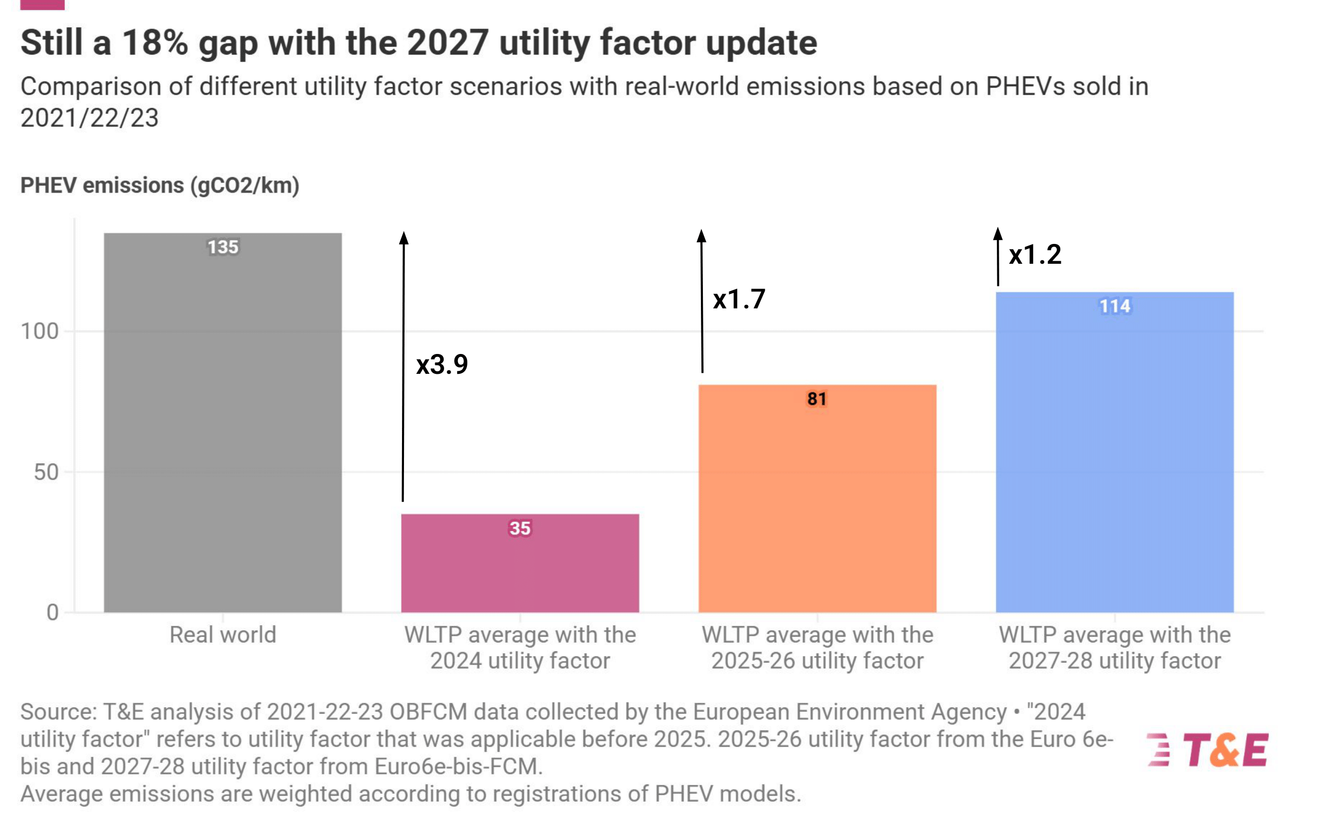 It is welcome that the UF values are being corrected. But even with the planned 2027/28 UF correction, PHEV real-world emissions would be 18% higher than the official figures.