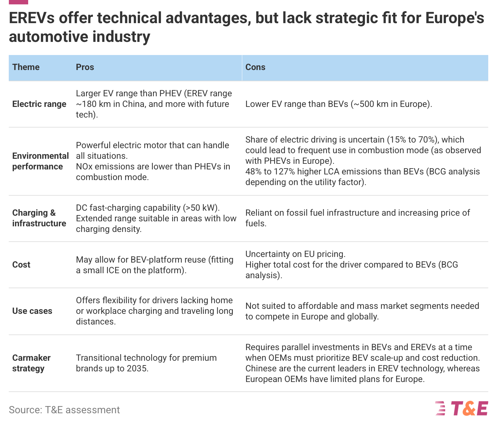 EREVs are not exempt from the PHEV shortfalls and offer limited potential for Europe: