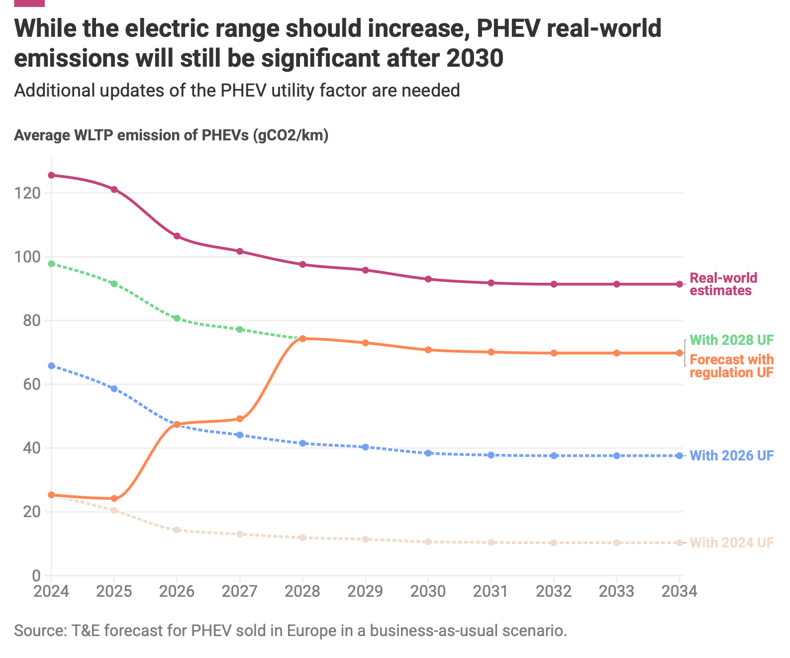 While the electric range should increase, PHEV real-world emissions will still be significant after 2030