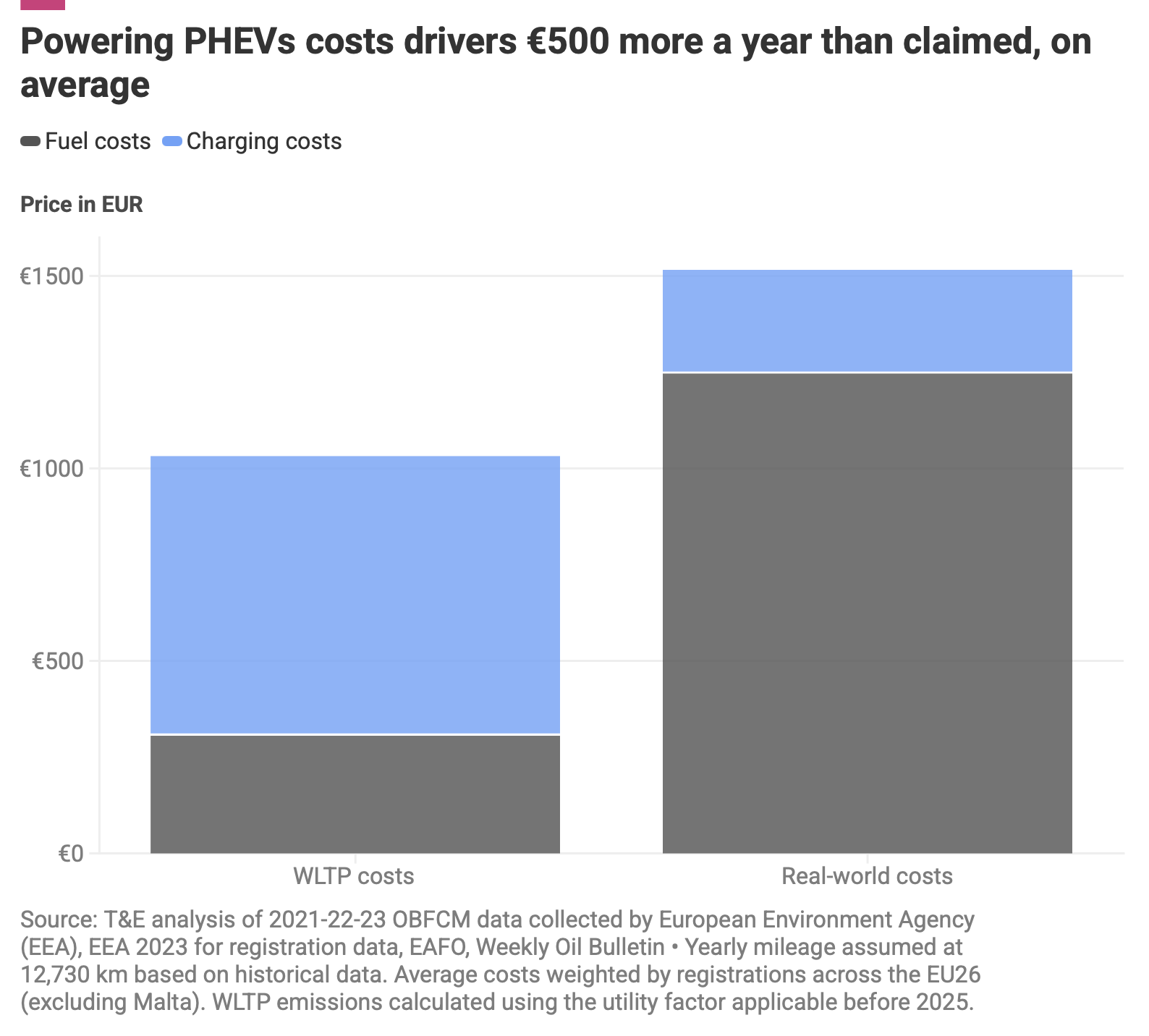 The gap between official and real-world emissions also burdens the wallets of PHEV owners. Over a year, drivers have to pay over €500 more than official values imply.
