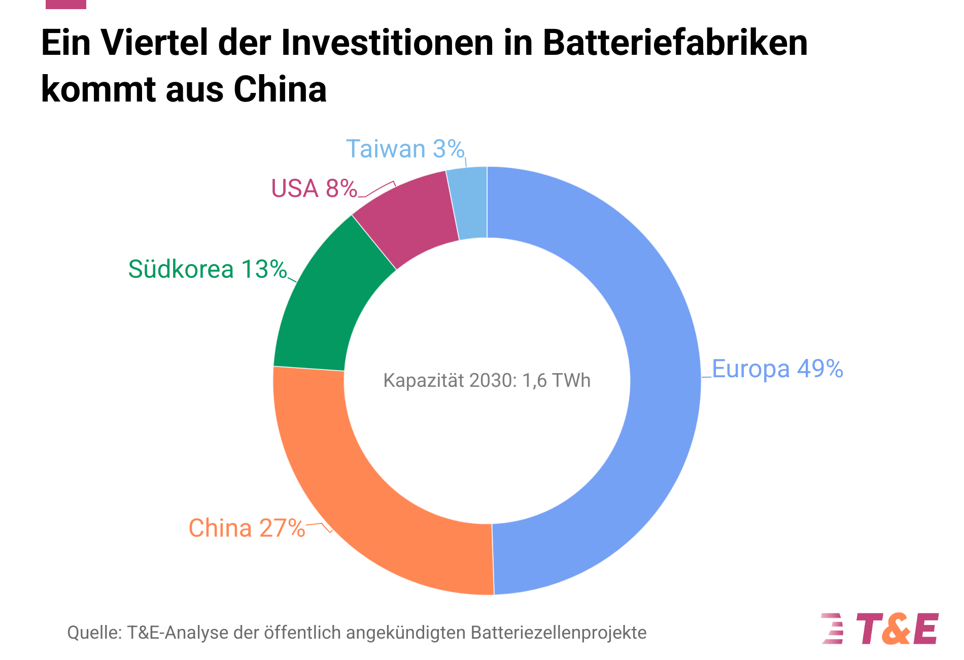 Sebastian Bock, Geschäftsführer von T&E Deutschland, sagt: „Europa muss mehr sein, als die verlängerte Werkbank der internationalen Batteriegiganten. Dafür braucht es verpflichtenden Technologietransfer und die Einhaltung europäischer Umwelt- und Sozialstandards. In dieser Hinsicht haben die Kooperationen zwischen europäischen und asiatischen Herstellern bis jetzt viel versprochen, aber wenig geliefert. Die Kommission muss alle ihr zur Verfügung stehenden Instrumente nutzen, um sicherzustellen, dass nicht nur Kapital, sondern auch Wissen und Technologie in Europa bleiben.”