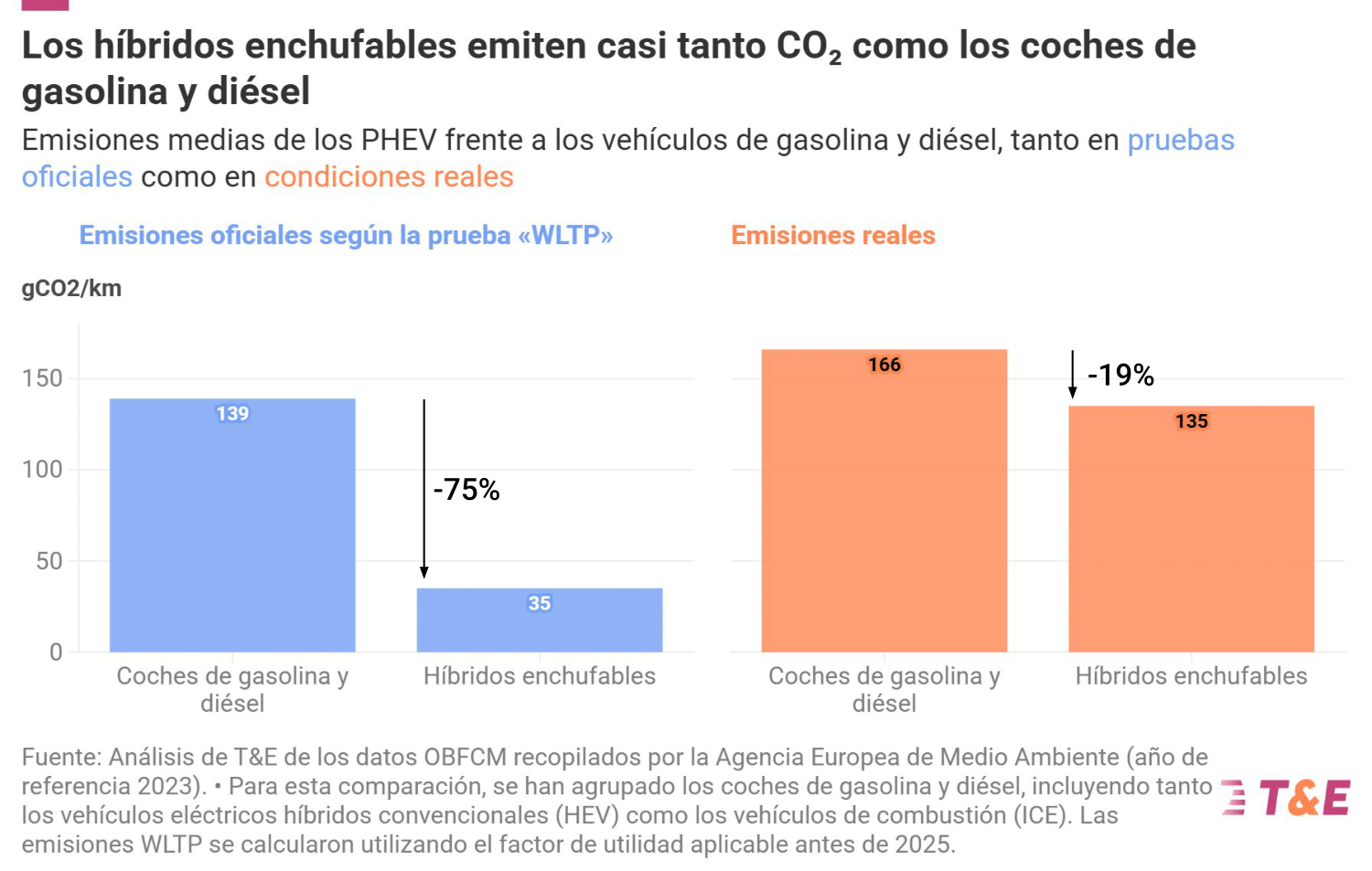 Laura Vélez de Mendizábal, experta en electromovilidad de T&E España ha afirmado: «Los híbridos enchufables han demostrado no cumplir con las expectativas ambientales que inicialmente se les atribuyen. Emiten casi tanto como los coches de gasolina. Incluso en modo eléctrico contaminan ocho veces más de lo que afirman las pruebas oficiales. La neutralidad tecnológica no puede significar ignorar la realidad de que, incluso después de una década, los PHEV nunca han cumplido lo prometido».