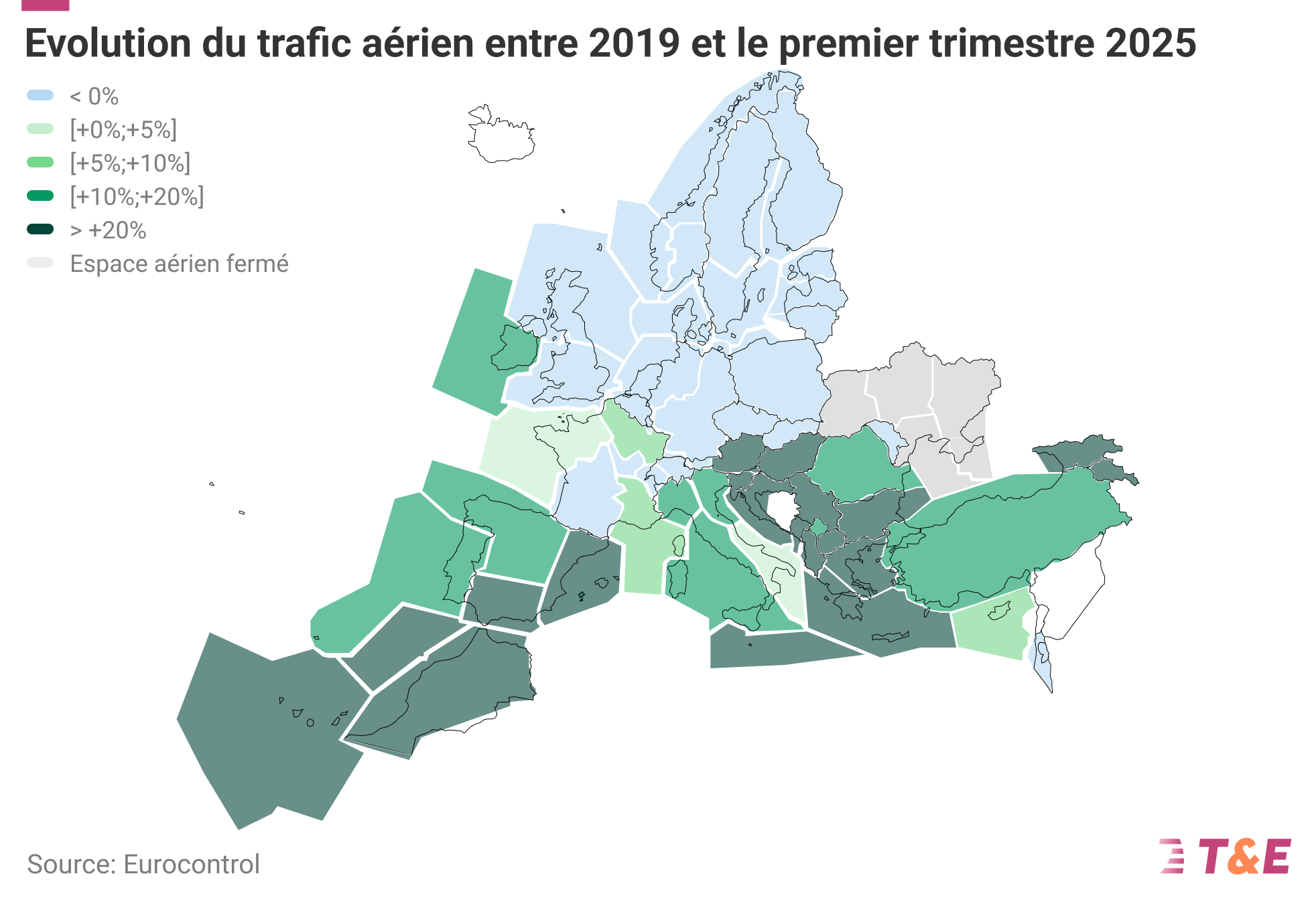 Alors que les voyageurs d'affaires se rendent généralement dans les centres économiques, les autres voyageurs se concentrent vers les destinations de vacances. Cela a entraîné une augmentation de 10 à 20 % des voyages aériens vers les pays du sud de l'Europe en 2025 par rapport à 2019. Ce sont ces tendances en matière de comportement de voyage qui ont un impact sur la demande des passagers, plutôt que la fiscalité et les autres coûts.