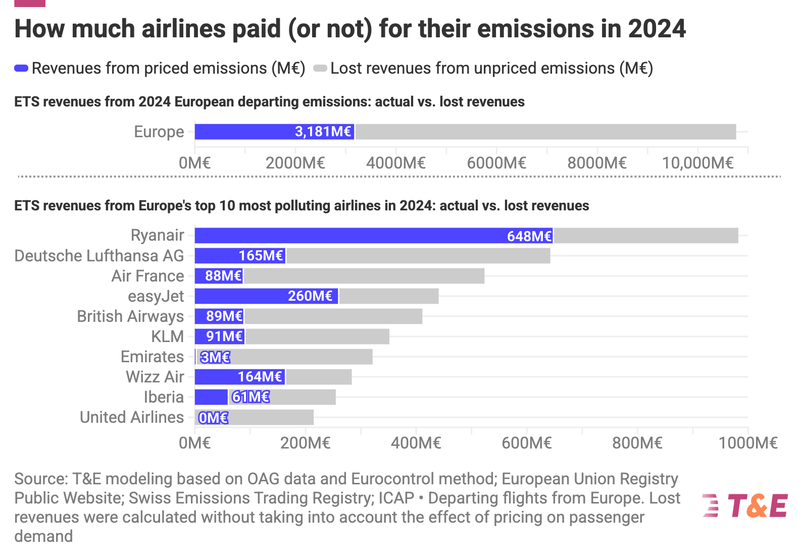 The current ETS for aviation has some serious shortcomings. 70% of CO2 emissions remain unpriced since long-haul flights are not included in the pricing scheme. Extending the scope of the EU ETS could have unlocked a further €7.5 billion in revenues in 2024 to fuel the green transition of the European aviation industry.